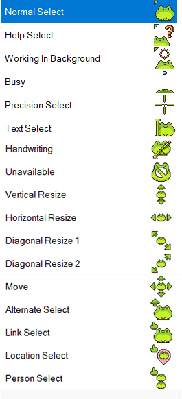 Always wanted a little pet on your desktop, but worry about overcrowding? Say hello to your very own tiny tree frog cursor! He daydreams a lot and loves bobbing around (: