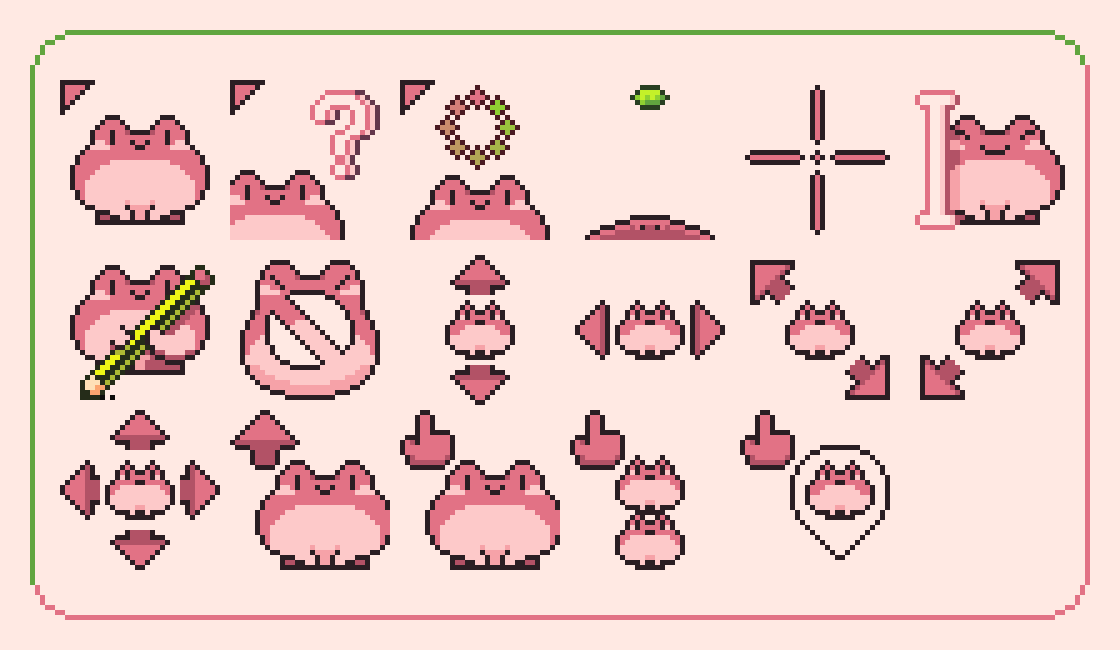 Each cursor's design is 32 x 32px, scaled to 256 x 256px for maximum effect.